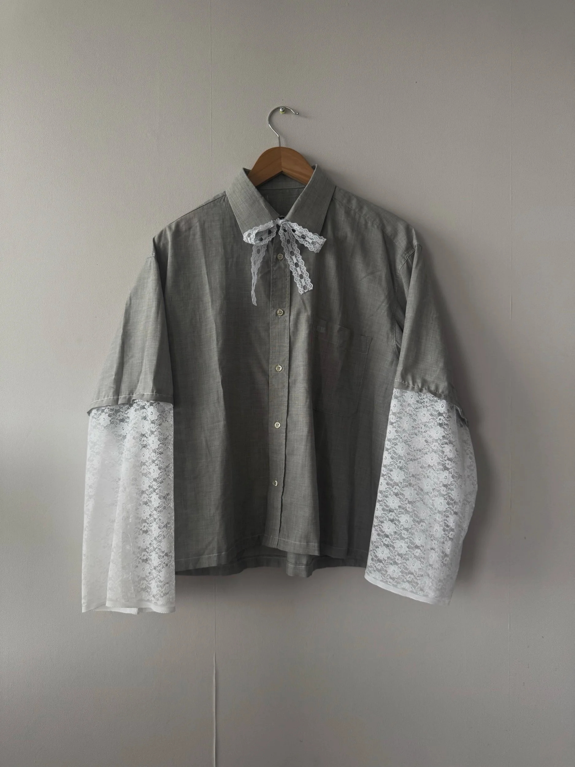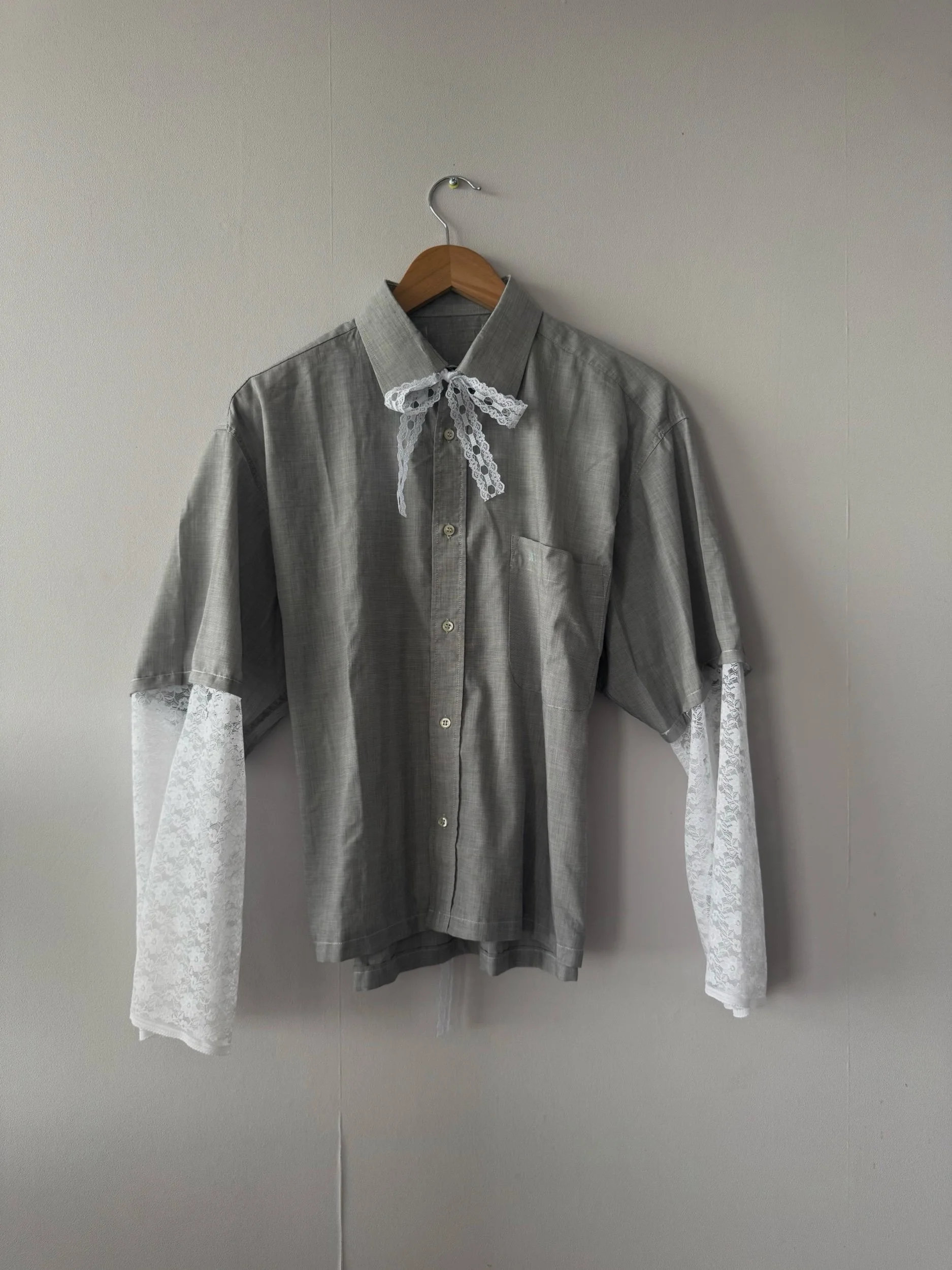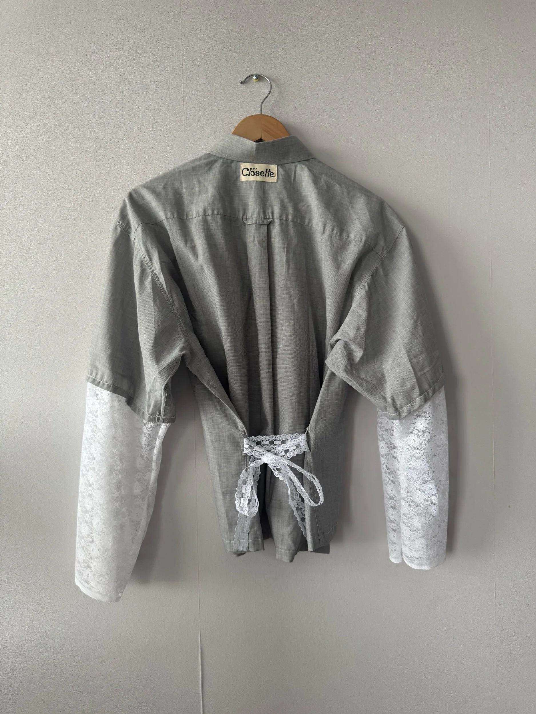 La chemise upcyclée « Yanou » une pièce unique, née du réemploi d’une chemise en coton chinée et transformée à la main dans notre atelier angevin.