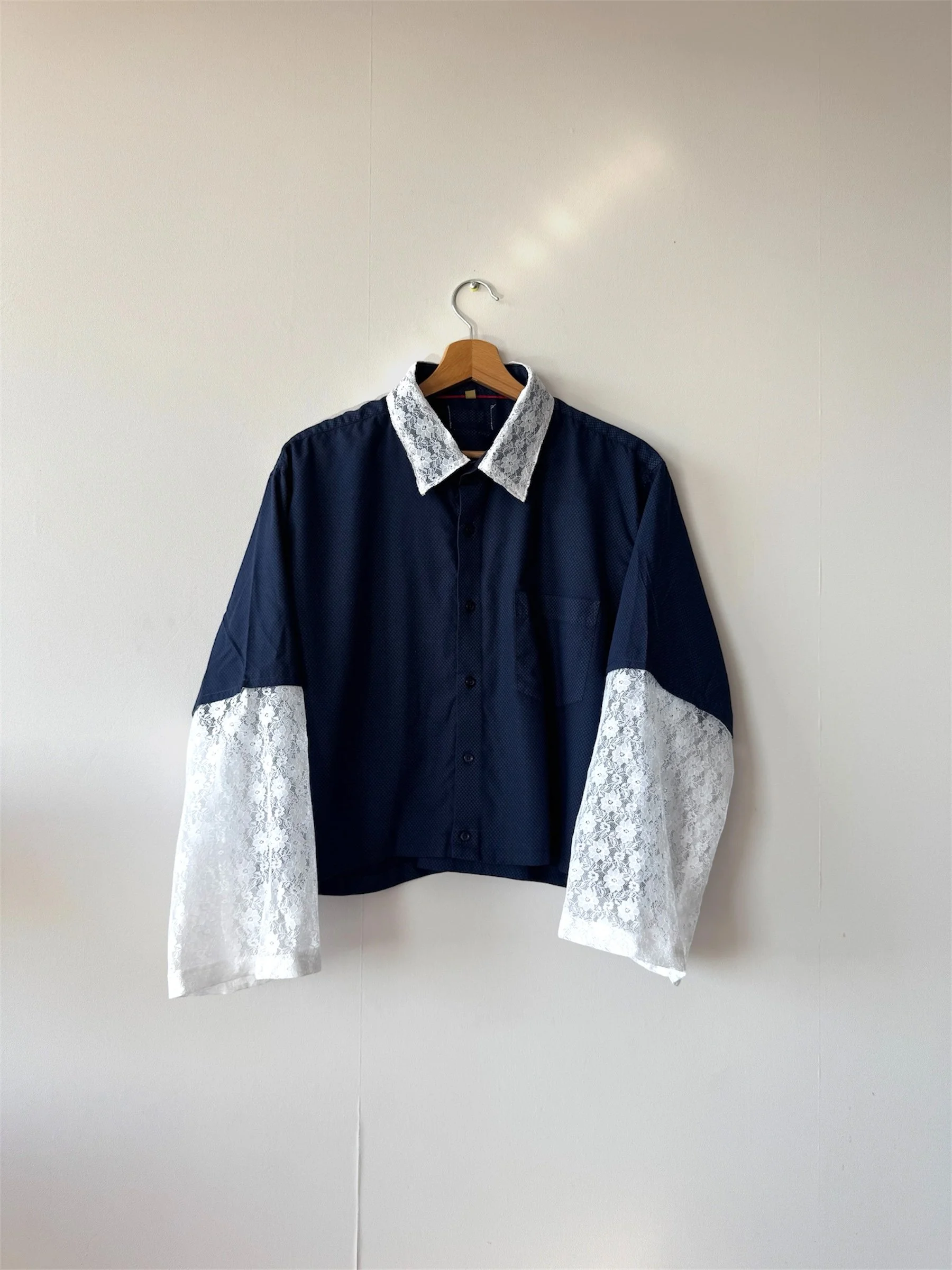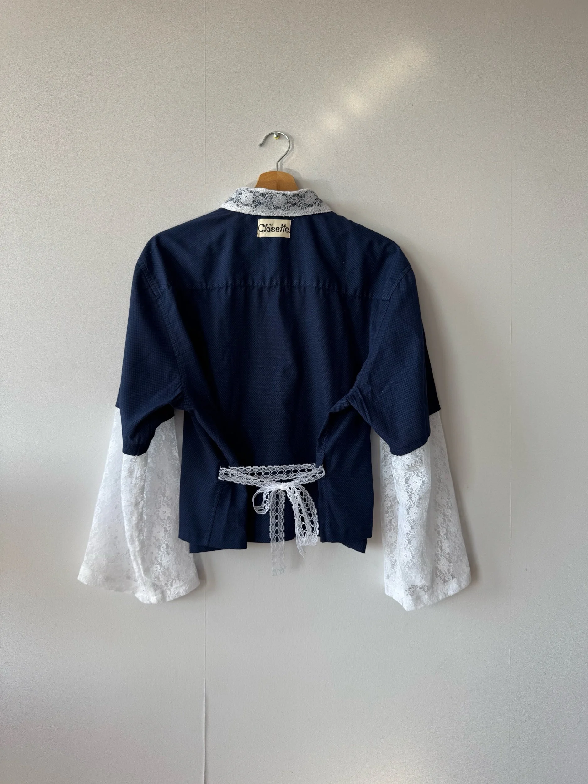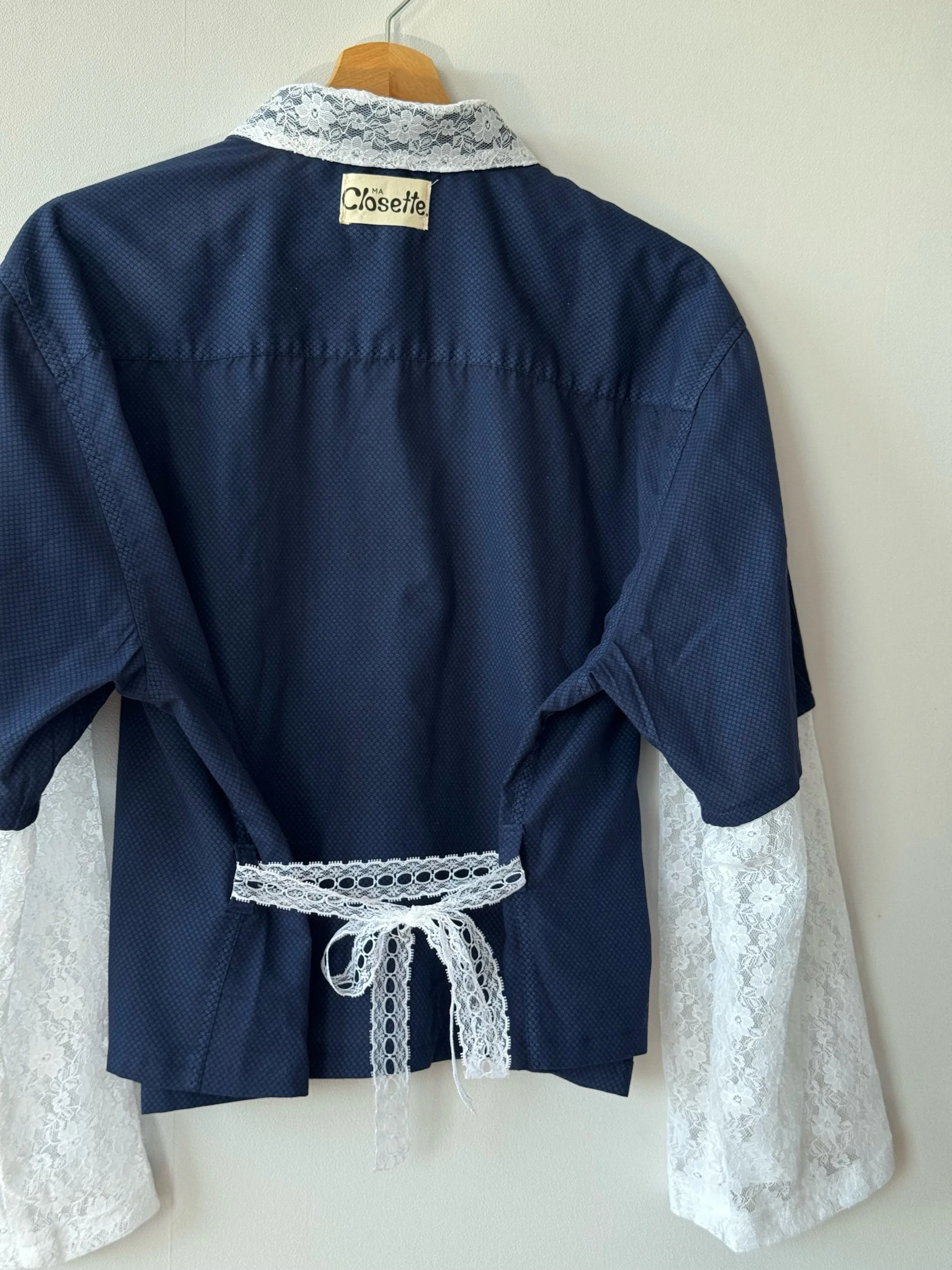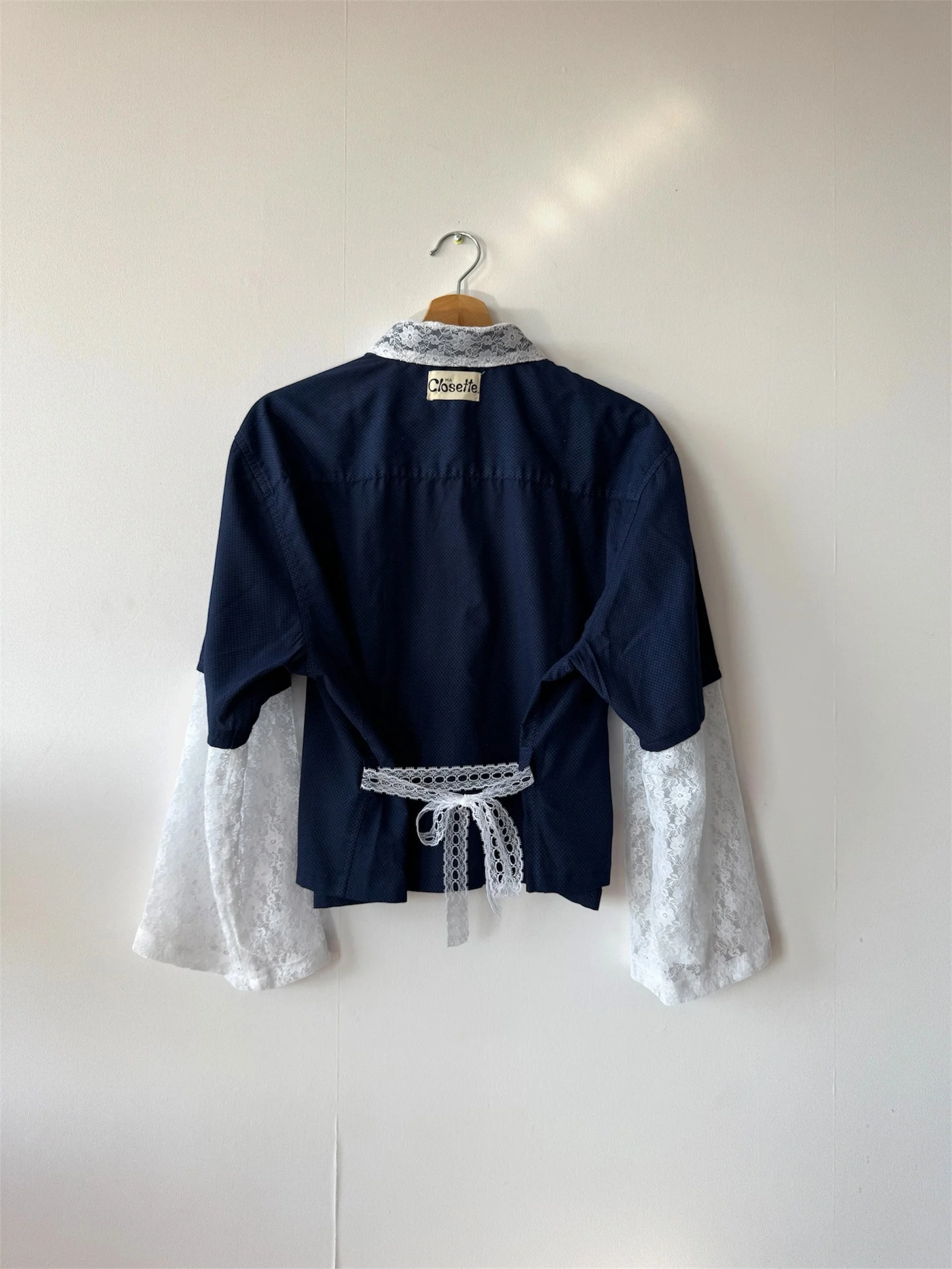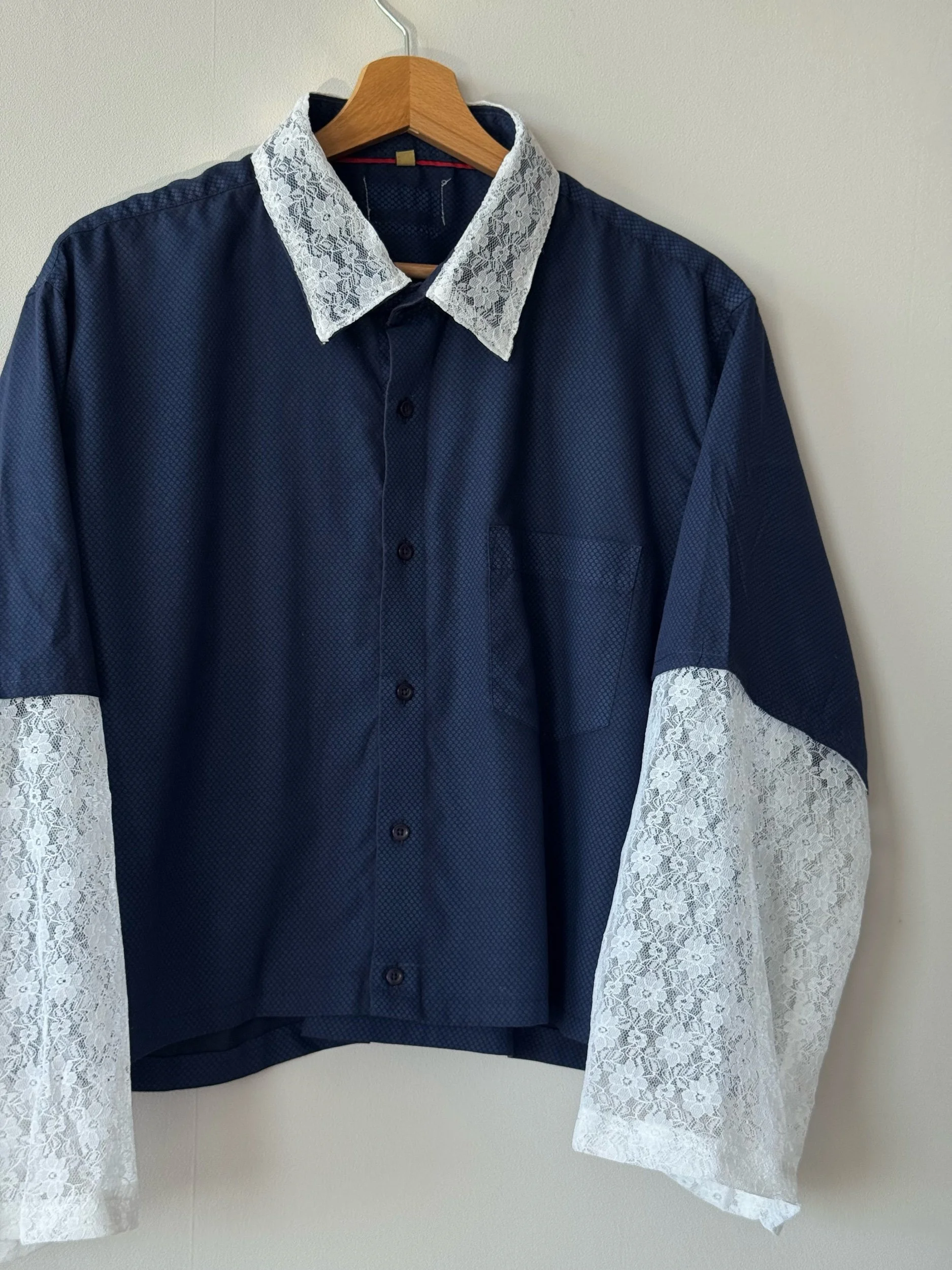 La chemise upcyclée « Yanou » une pièce unique, née du réemploi d’une chemise en coton chinée et transformée à la main dans notre atelier angevin.
