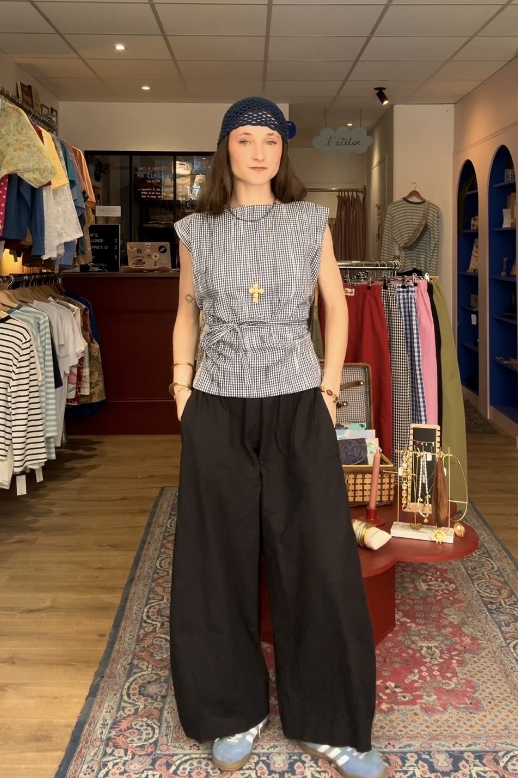 Pièce issue de tissus deadstocks, retravaillés à la main à Angers.